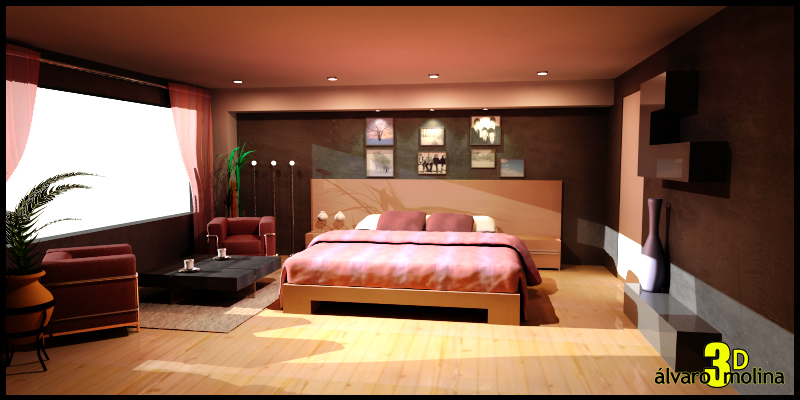 Aquí os dejo un dormitorio en 3dstudio Max 2010, sin Vray, es todo Mental Ray y ajustes de Photoshop cs5.