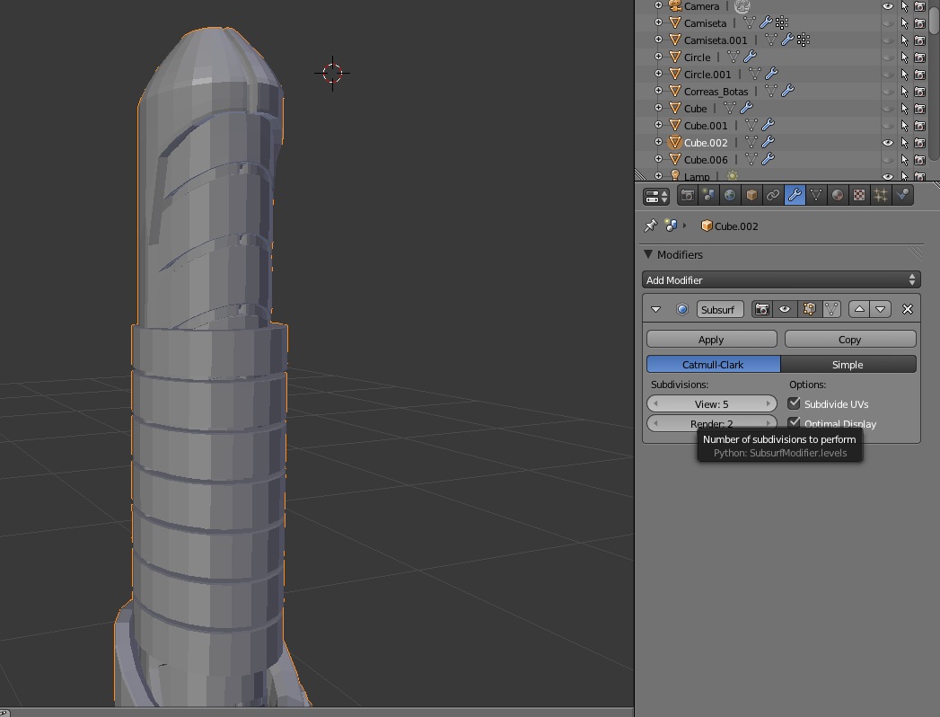 Hola a todos. Lo que me pasa es lo siguiente;tengo un objeto, añado el modificador subdivisión surface y solo me acepta una subdivisión, es decir, por más que suba los view no me hace la subdivisión de más de 1. Tengo que añadir tantos modificadores como subdivisiones quiera con el view a 1. ¿alguien más le pasa? Tengo la 2.57 pero he abierto la escena en la 2.56 y también me pasa. El caso que lo he estado usando sin problemas. ¿habré tocado o activado alguna función por ahí? Gracias.