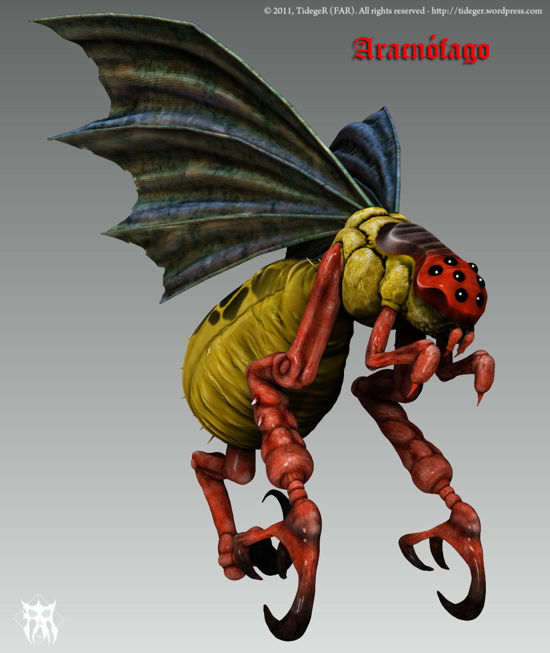 Bueno aquí pueden observar el modelo listo y texturizado, el texturizado fue echo por medio de Polypainting y en las alas use spotlight con una textura que tenía. Espero que les guste mi aragnófago.