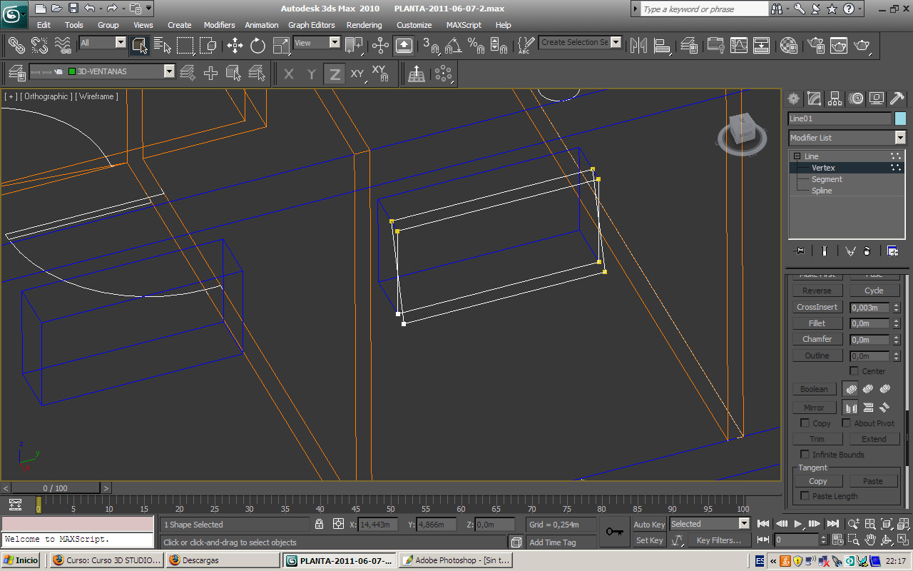 Ahora estaba intentando dibujar una Spline por la cara exterior del muro apoyándome en los.