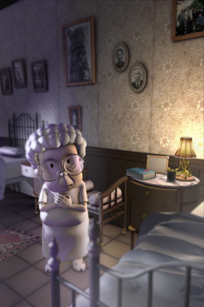 En cambio si hubiese exagerado un poco el índice de refracción de los cristales de las gafas y que se viesen los ojos más grandes y distorsionados por la óptica. Pienso igual que Ferriz, los retratos en 3d le darían un toque extra a la escena.