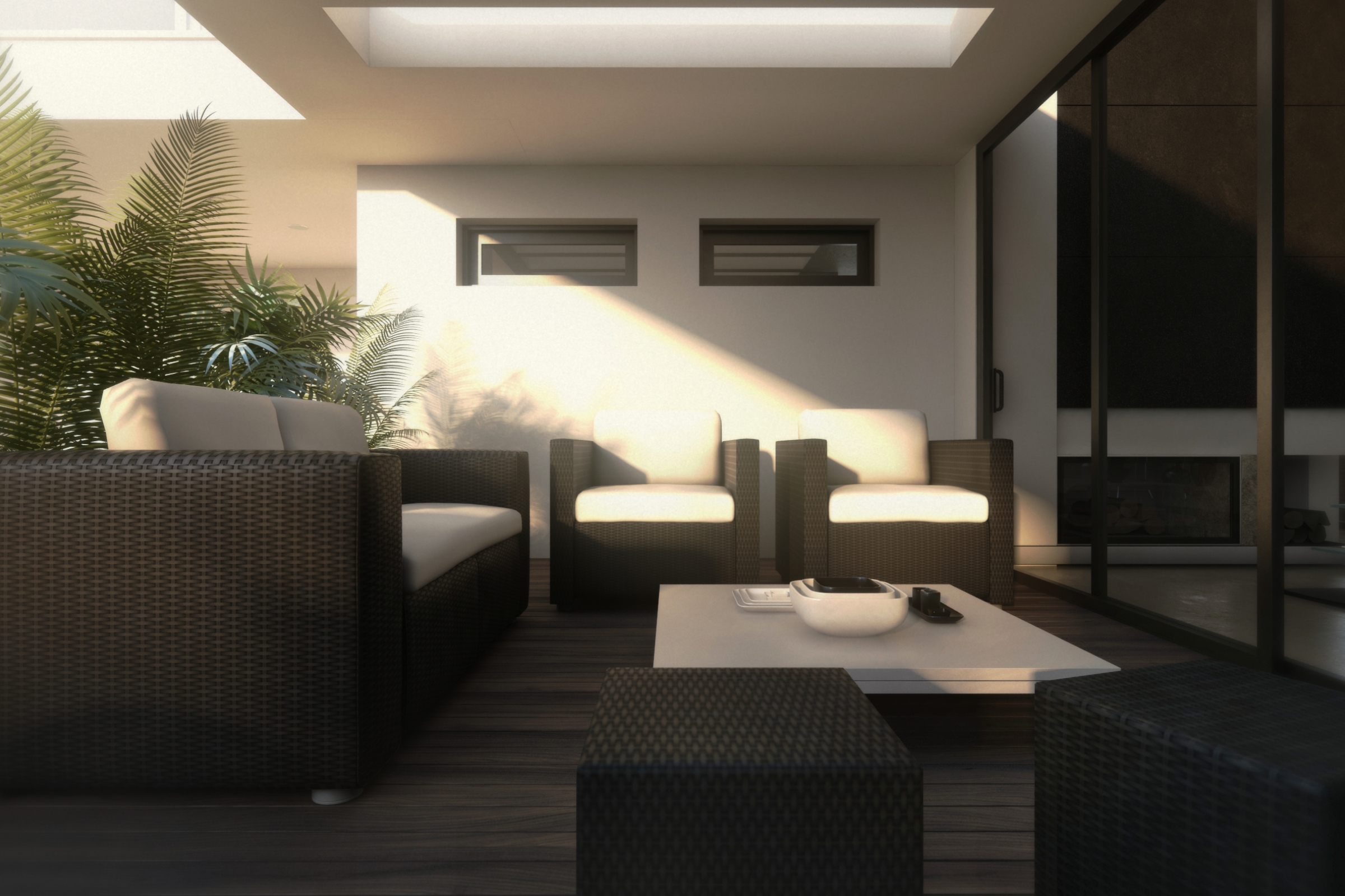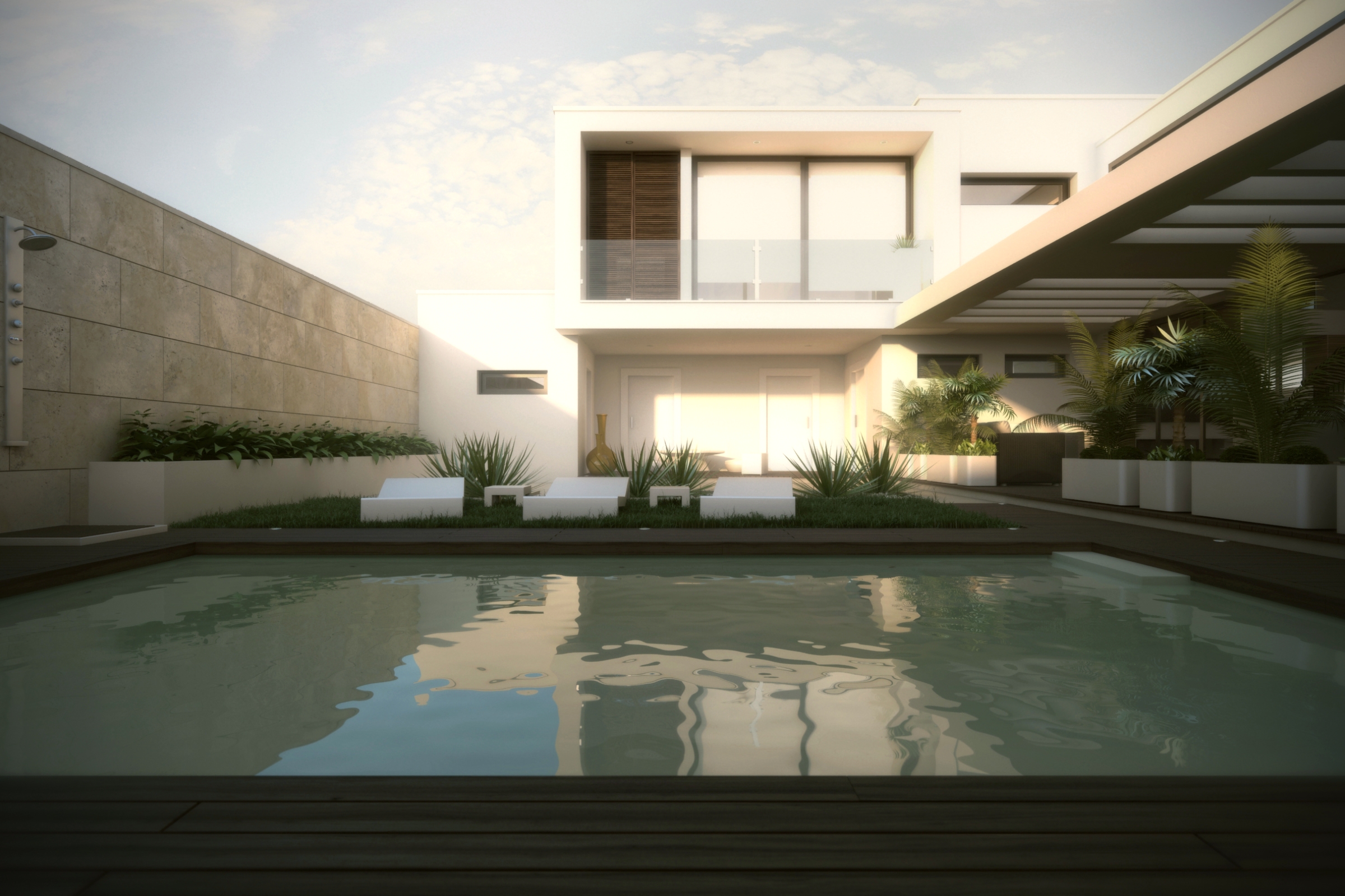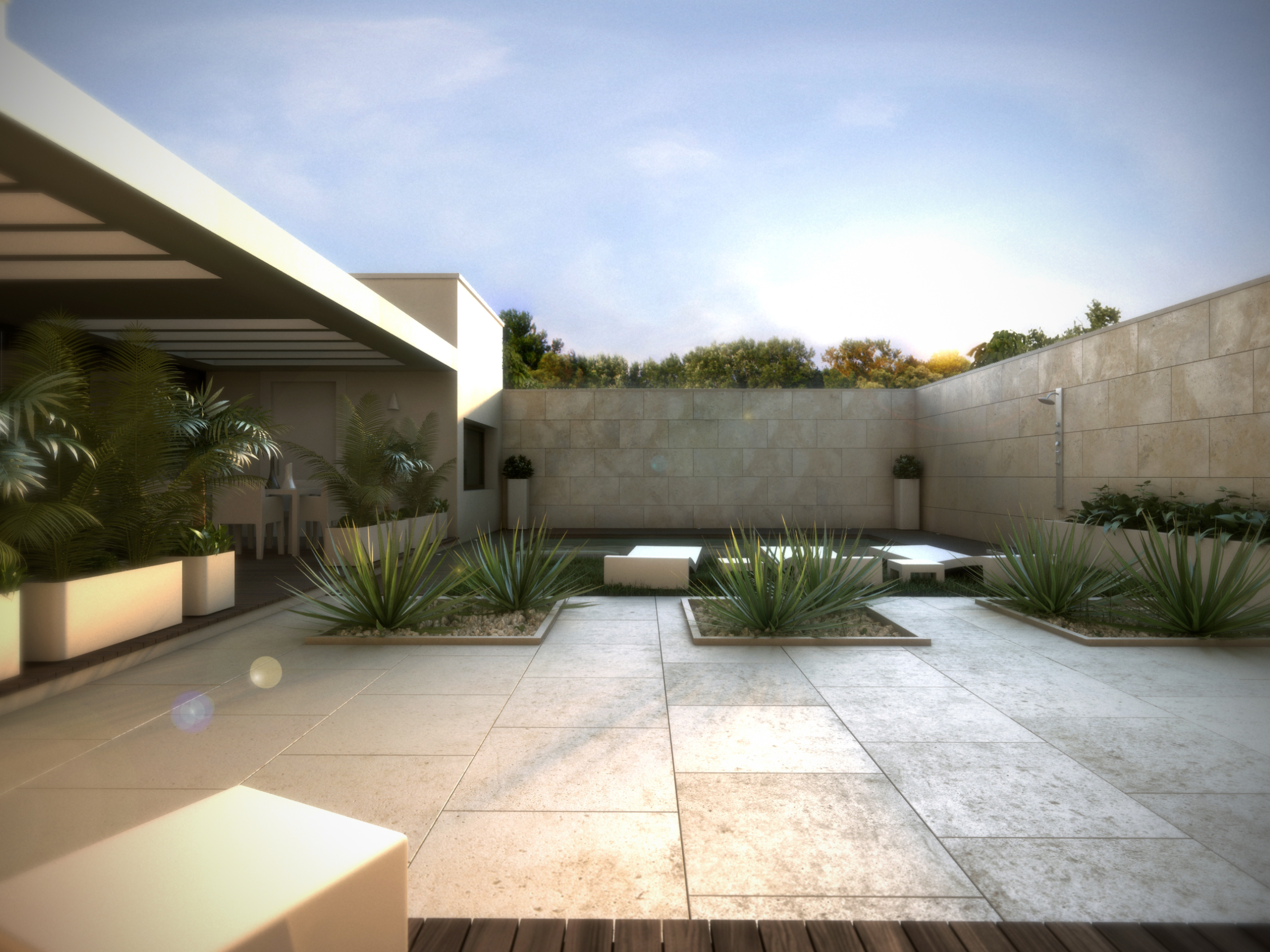 Muy buen trabajo, los materiales, el césped y la iluminación junto con la postproducción son impresionantes. La única imagen que puedo decir algo es la última, en los sofás podrías haber puesto en el material de mimbre un mapa de desplazamiento, hubiera quedado perfecto, pero mi imagino que habrás tenido tus motivos para no hacerlo.