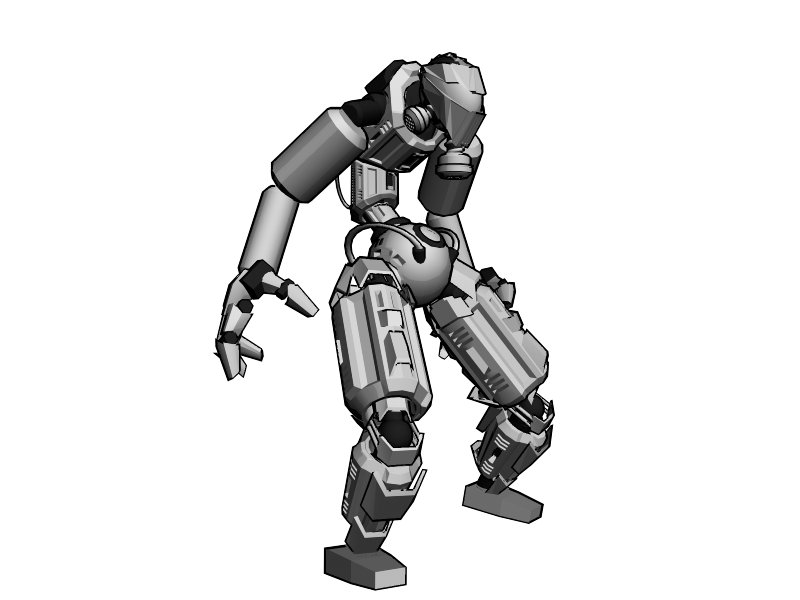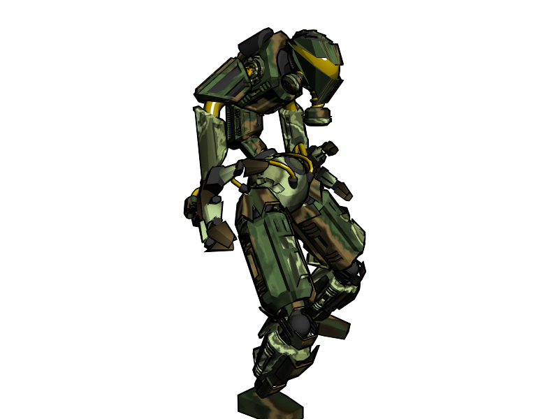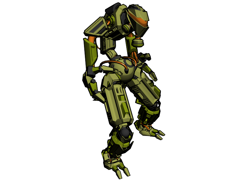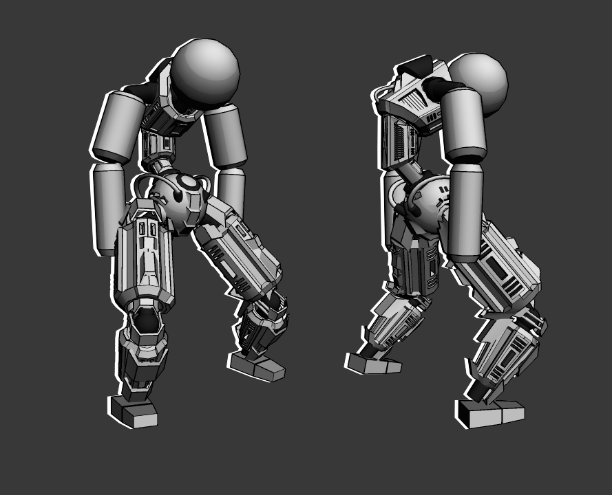 Ah exacto era el material, es que me gusta cómo se ve resaltado el color negro en las esquinas, lo malo es que veo que hace que no se vea muy circular la cabeza, entrepiernas, al igual de los cilindros de los brazos, pero creo que eso se soluciona cambiando de render. Va muy bien hasta ahora, te felicito.