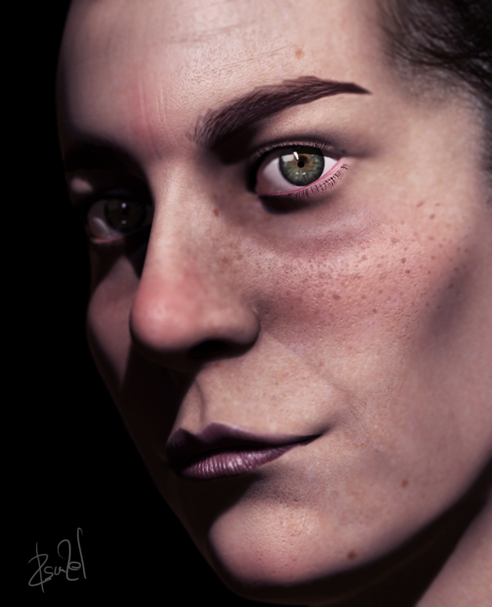Aquí os dejo la imagen final de un retrato femenino. Espero os guste. Redalizado en 3d Studio, texturas creadas en Adobe Photoshop. El mapeo con UV Layout. Y edición final en Adobe Photoshop. Saludos.