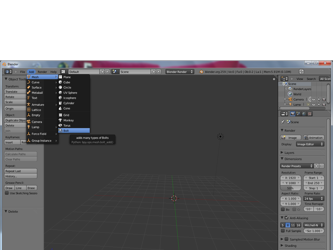 Vemos que junto con el tornillo se despliega una nueva pestaña llamada add Bolt (sirve para editar la forma del tornillo, o tuerca si lo cambiamos os a esta última en esta pestaña.