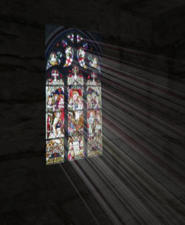 Segundo: creando un modelo que simula los rayos de luz de la ventana, a este modelo se le pone una textura y se le aplica alpha para transparencia.