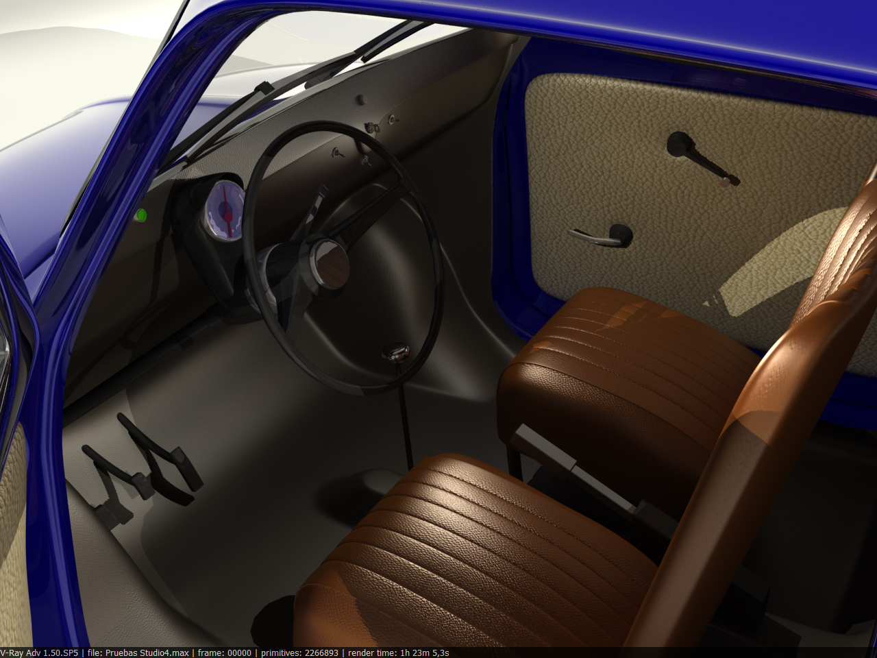 Para modelar este coche he seguido el tutorial que muchos hemos hecho por aquí y, aunque ya sé que está muy visto, me ha servido para practicar varias técnicas de modelado y sufrir con ellas. En cambio texturizar e iluminar ya he tenido más dificultades y he tirado de bibliotecas, creo que es mi punto débil cómo se puede observar, pero espero mejorar con la práctica en mis próximos modelados.