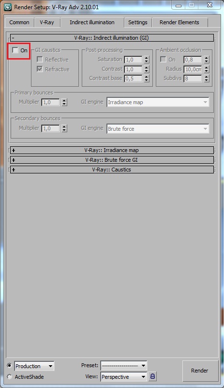 Hola amigos: Me ha surgido un problema como consecuencia de haber cambiado del Vray 1.5 al Vray advanced 2.10. Como veréis en las dos imágenes adjuntas, cuando hago una prueba de render con el render normal de 3ds Max (Scanline, no, advanced) la cosa sale más o menos bien. Pero si en lugar de eso utilizo el Vray, la imagen me sale como fosforescente, muy luminosa.