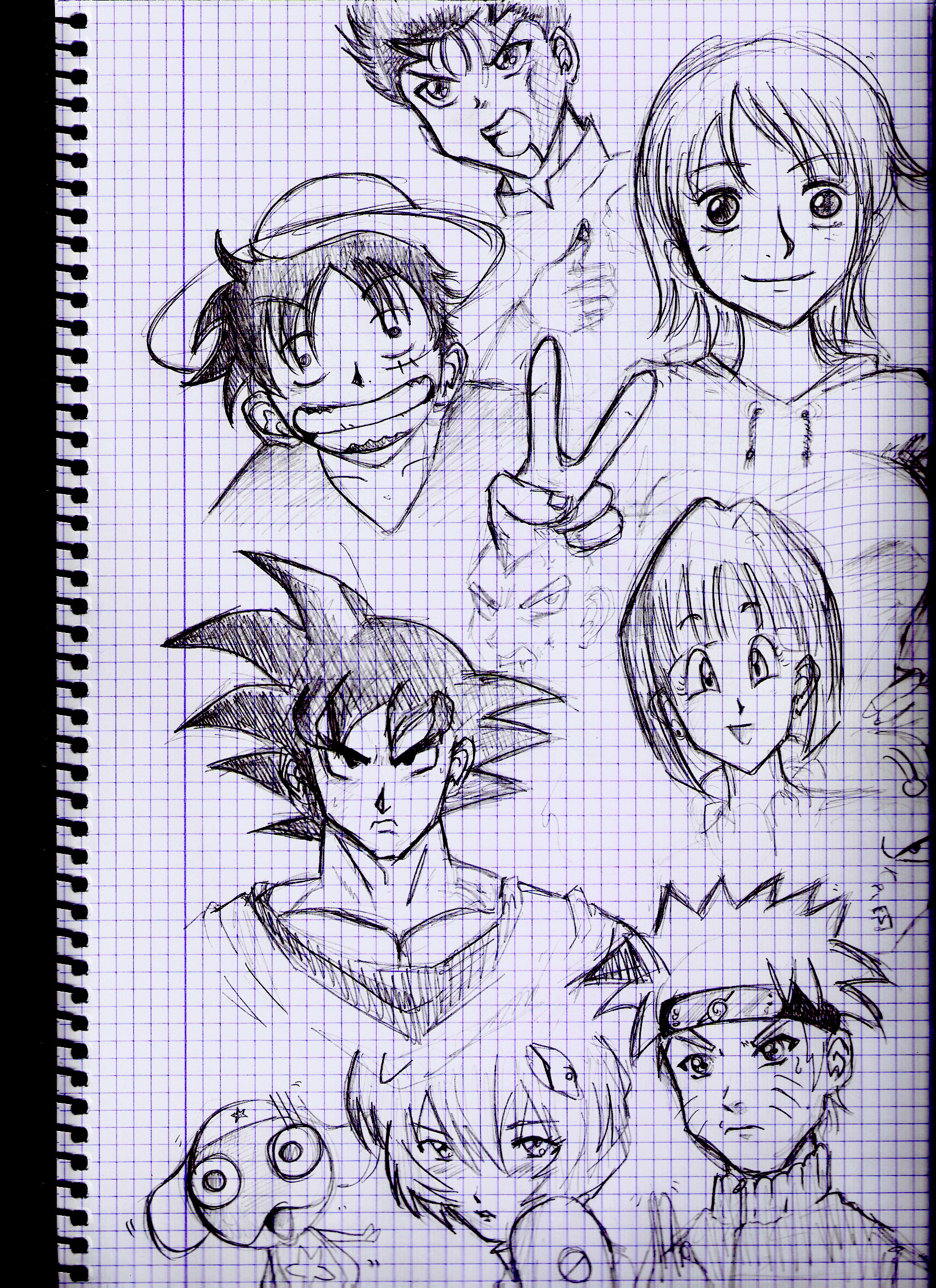Me gusta la línea y estilo del segundo de arriba y el último de este último mensajes. La hoja con personajes mangas no está nada de mal.