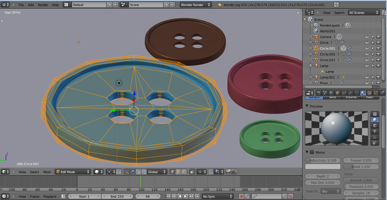 Adjunto un modelado de un botón que estaba haciendo puntualmente para testear el uso del UV mapping.