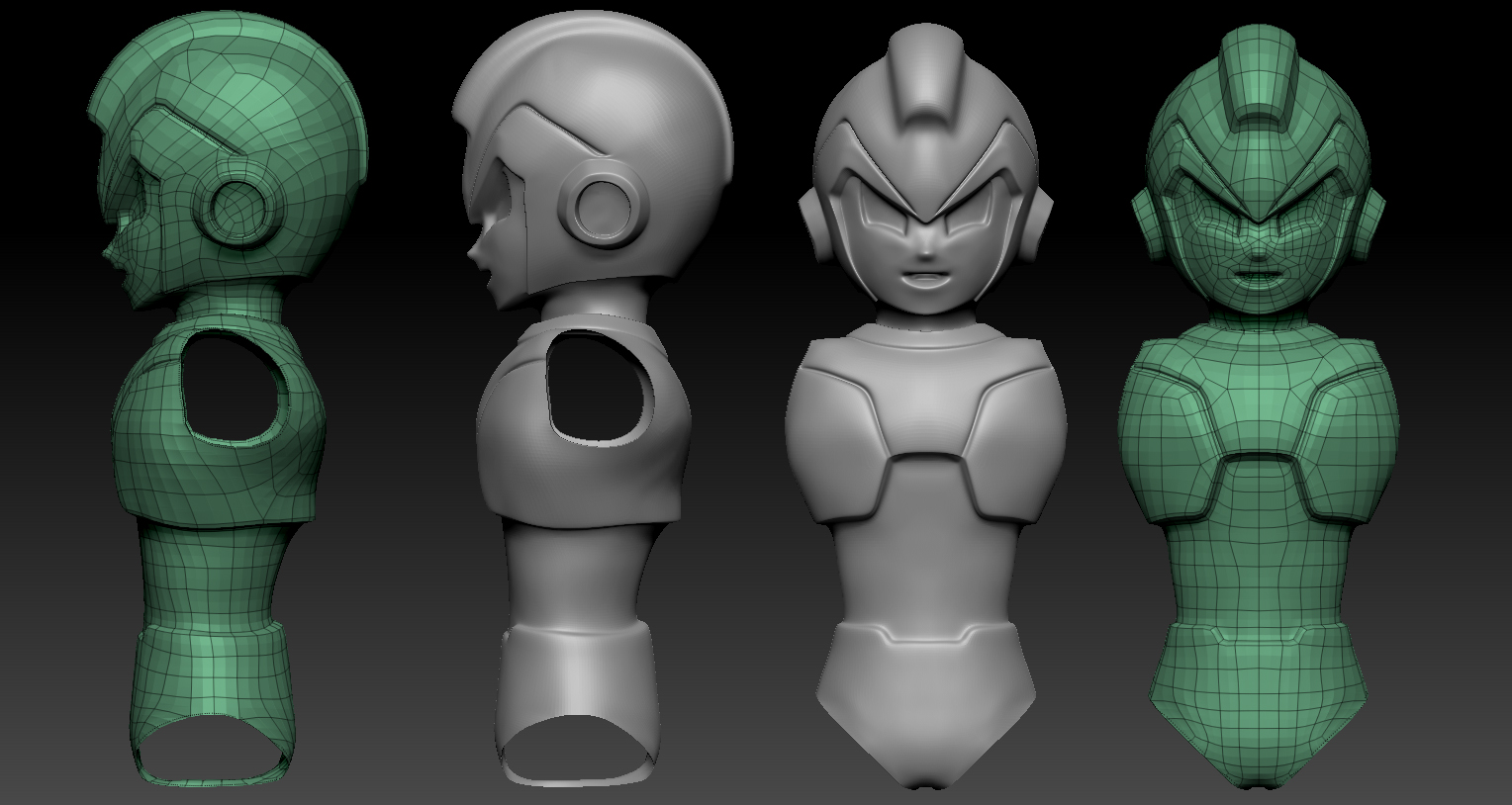 Aquí dejo un avance más del Megaman en ZBrush, con unas correcciones en la malla del casco y de la cara, pero sé que aún falta no soy un experto en topología, pero hay voy.