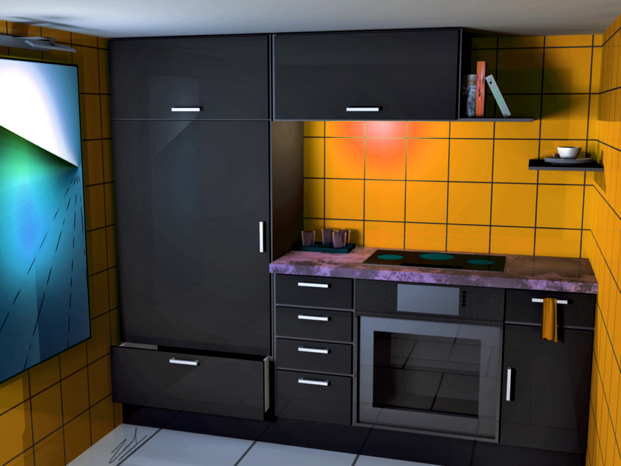 Hola. Es mi primer mensaje fuera del subforo de presentación, pero bueno, espero que vaya bien. He realizao un modelado de una cocina, he estado liado con el texturizado, luces, y al final he sacado esto, no es muy bueno, pero creo que mejor que las cosas que hacía antes con SketchUp, ahora uso LightWave y un poco de Photoshop luego.