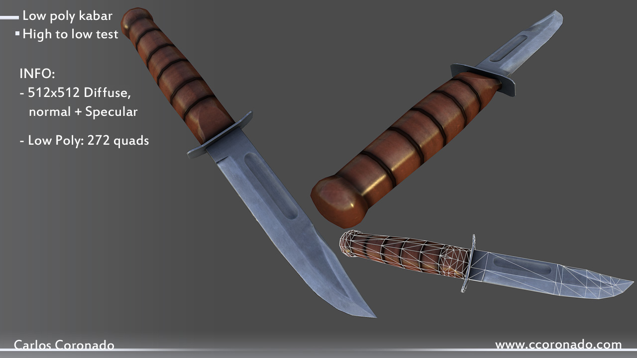 Y mientras, le dije a un amigo que me recomendare un asset para practicar el modelado High Poly y luego bakearlo en el Low y me recomendó un kabar, que he ido haciendo en mis ratos libres. Bonito cuchillo el kabar este. Un saludo.