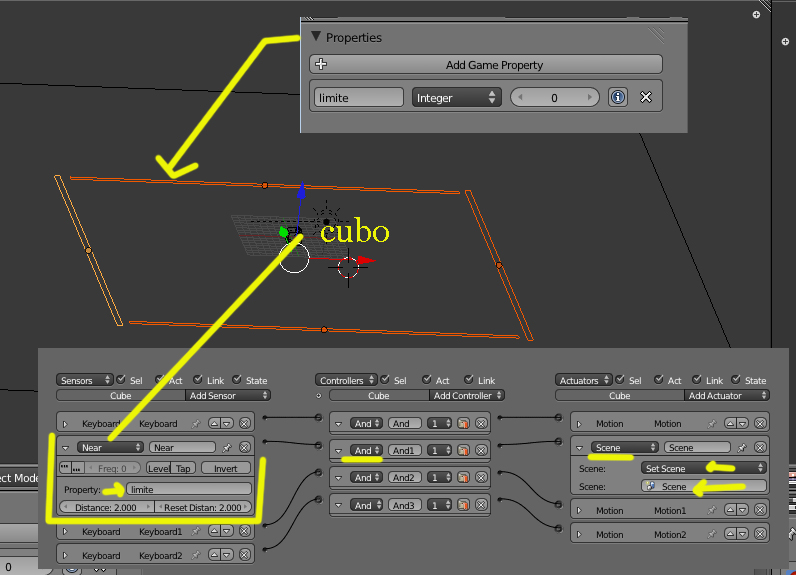 He puesto un plano (que será el terreno) y lo he agrandado exageradamente. A un cubo le apliqué movimientos de adelante, detrás, izquierda y derecha en el Game Engine. Después emparenté el cubo con la cámara. Le doy a, y con w,s,a,d, hago un recorrido virtual por todo el espacio. Los programas 3d tienen un campo infinito, cuando recorro todo el plano llega un momento en que éste se acaba y veo alrededor un vacío o campo infinito, se podrían añadir muchos mundos y ocurre cómo en la vida: que tras una ciudad hay más terreno y no se termina el espacio. ¿cómo hago para que sí, por ejemplo, sobre un plano creo un pueblo con casas y me muevo con la cámara cómo lo hice tenga un espacio limitado hasta dónde yo lo ordene sin que se vean fondos alrededor y todo sea el espacio que quiero aplicar? Tampoco sé cómo hacer para sí, por ejemplo, el actor, un cubo, choca con una pared se pare y no la traspase.