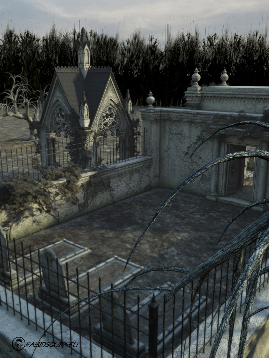 No esta nada mal, a mi se me antoja como el escenario de introducción de un juego en plan apocalipsis zombie. Atrapado en el cementerio mientras lo bichos se acercan desde el bosque. Y en de repente los tienes dentro. Uh.