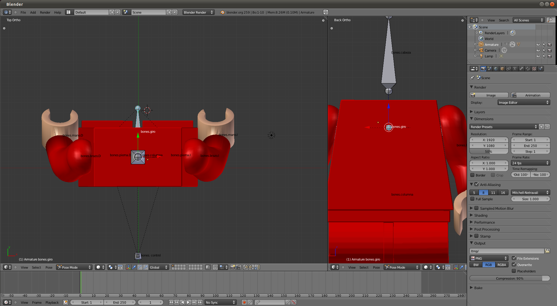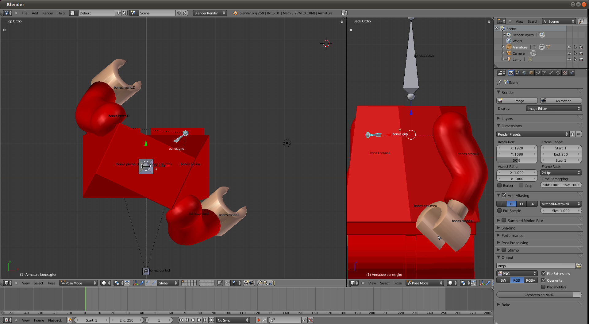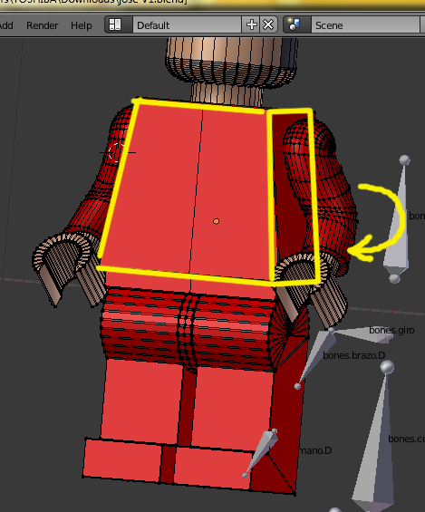 Pero cuando realizo el movimiento de giro de los hombros (aunque acompañan los brazos a los hombros), los brazos de desplazan más de la ubicación que deberían tener.