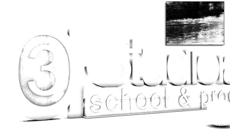 Si es como mapa de suciedad, usaremos menos subdivisiones creando ruido en la imagen, incluso aplicaremos un bitmap, como máscara, en slot de Radius para acentuar la suciedad sobre los objetos. Como en la siguiente imagen.