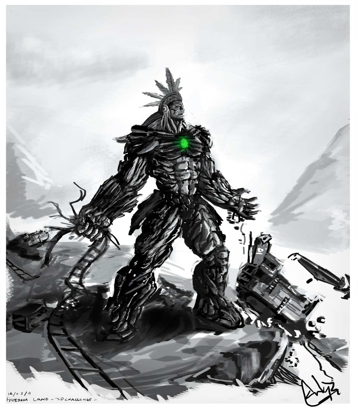 Me gusta el concepto, me hizo recordar una leyenda incaica, aunque tú modelo creo que representa a los pueblos de Norteamérica.