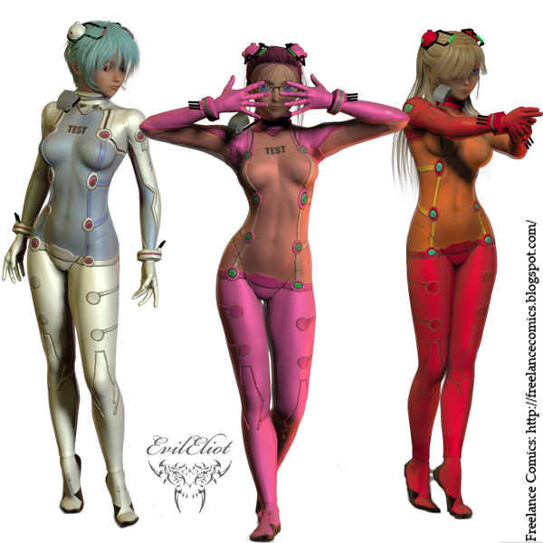 Hola, hice unas texturas de evangelion (Asuka, Rei Ayanami, Mari máquinami) para el bodysuit de Daz Studio v4a4g4 aiko4, victoria4 y the girl 4 y su expansión, espero que les gusten, si los bajan, comenten para saber cómo los usaran.