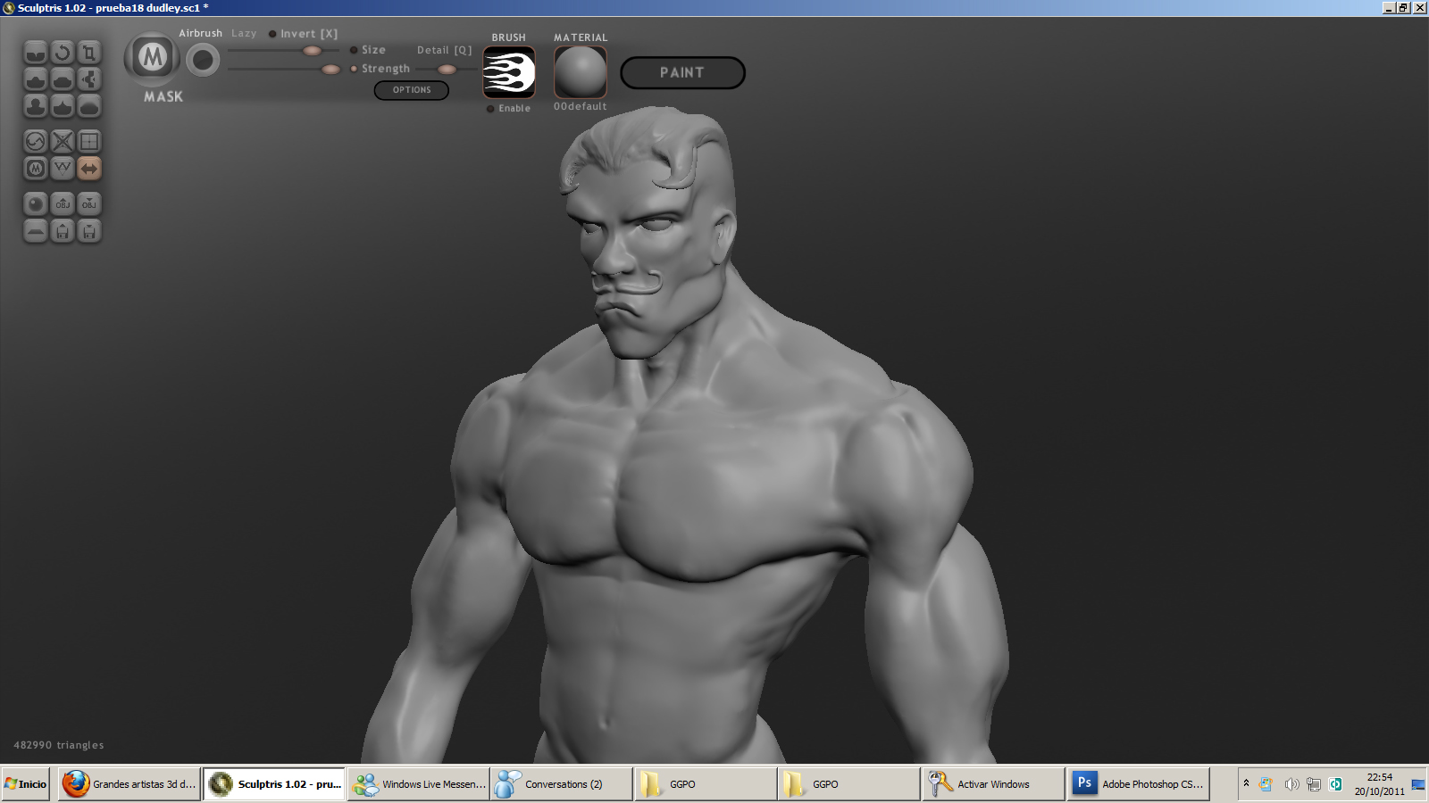 Bueno, estos son avances de una versión realista de dudley, personaje del Street Fighter, que quiero hacer. Es la primera vez que agarro un programa de esculpido y la verdad me sorprendió la facilidad con la que se pueden lograr modelos que directamente en 3dsmax son prácticamente imposibles.