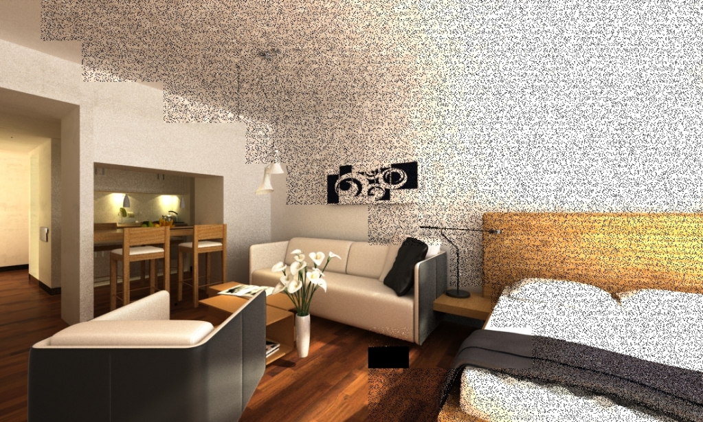 Gente, no sé cómo eliminar esas partículas como manchas grises que, aparecen en los objetos. (obviamente es un render cancelado y las manchas se ven en la parte finalizada).