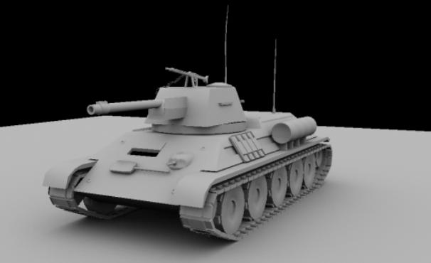 Le falta modelado, añádele detalles, suaviza las cadenas y las aristas, le faltan tornillos, remaches, cables. Ah y la ametralladora la has puesto en el lado contrario.