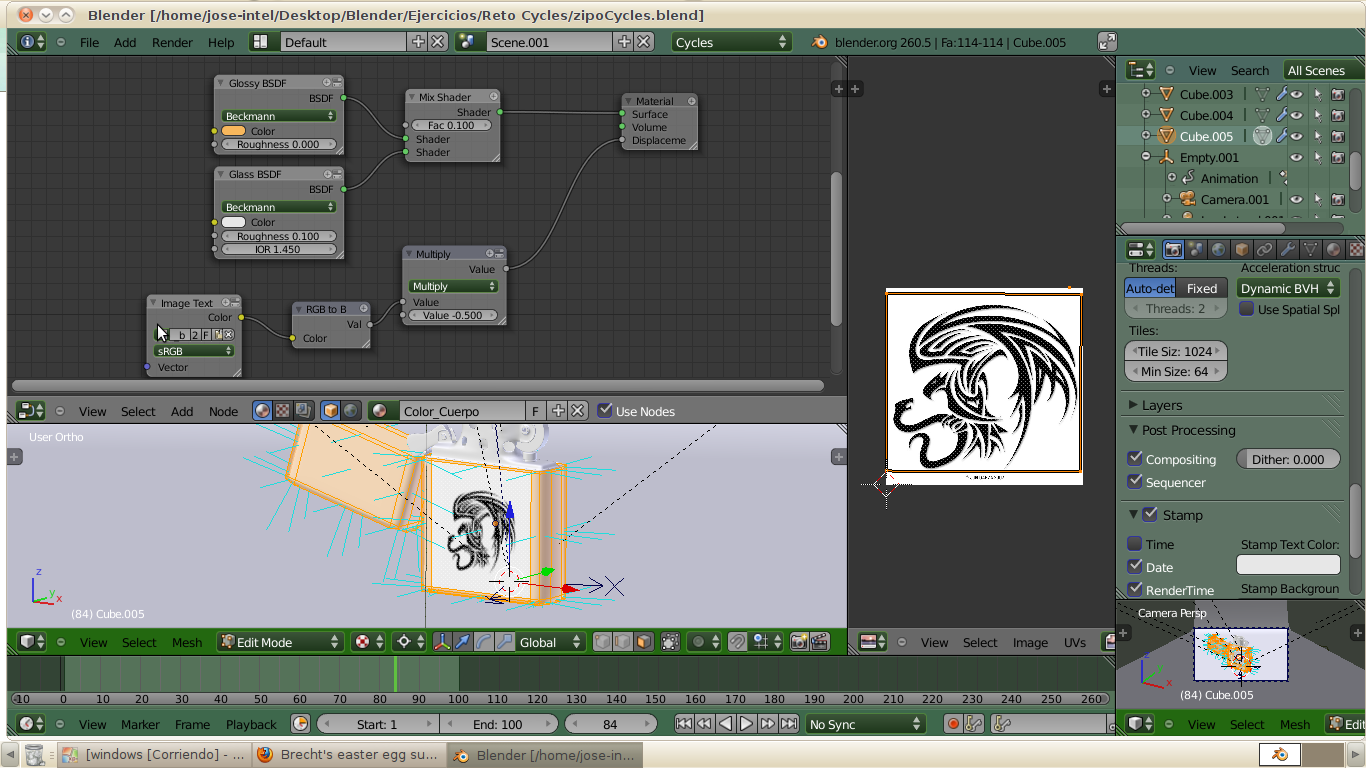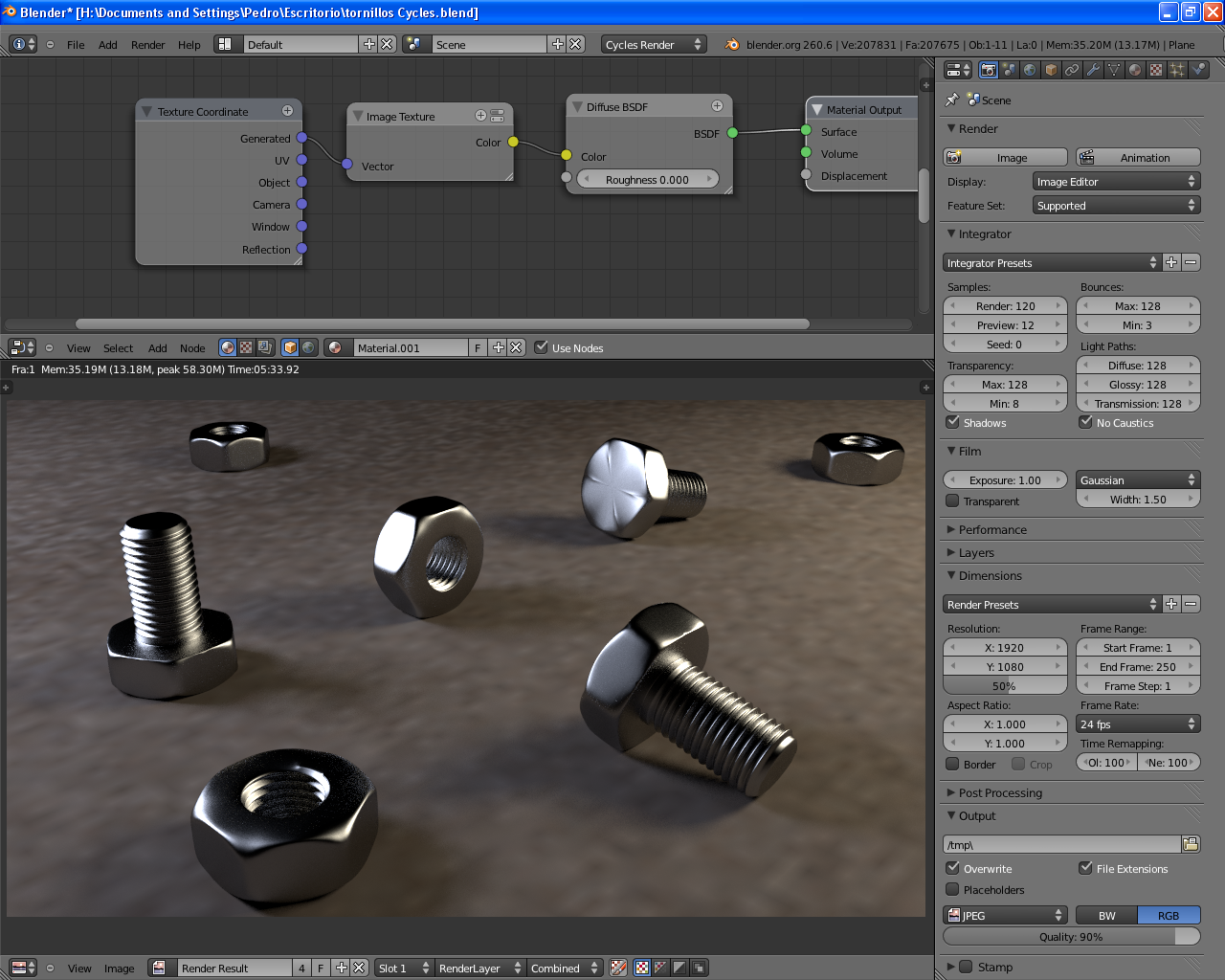 Gpu (Nvidia GeForce GTX560) 15 segundos (Renderiche te recomiendo esa gráfica, al menos para render).