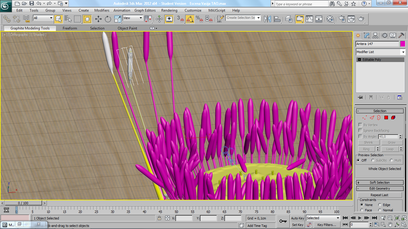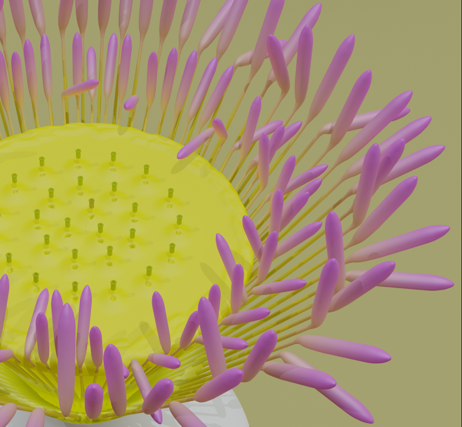 Mi consulta es que estoy modelando una flor en 3ds que tiene alrededor de 142 estambres, los cuales, como aparecen en la imagen, tienen distinta posición ya que están con distinto bend. Entonces lo que quiero es pintar la base de color amarillo y la antera de color blanco, se me ocurrió agregarle un Unwrap y después pintarla con el viewport canvas y quedó bien, pero ¿cómo hago para texturizar las 142? ¿podría ser con un material composite y tener que repetir el proceso 142 veces? ¿se les ocurre algún otro método? En la imagen los estambres de arriba son pruebas que estoy haciendo, y la antera a la que me refiero es la parte más ancha de arriba. Gracias.