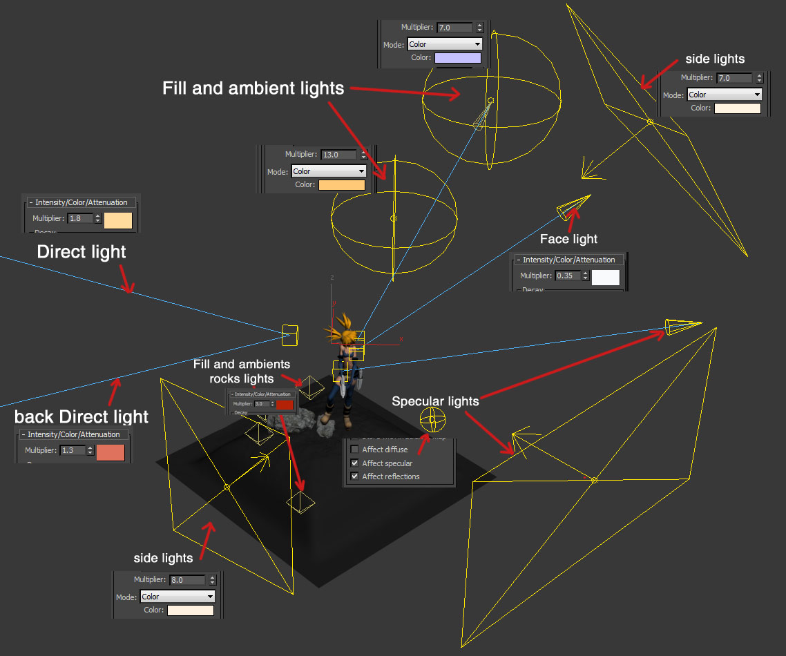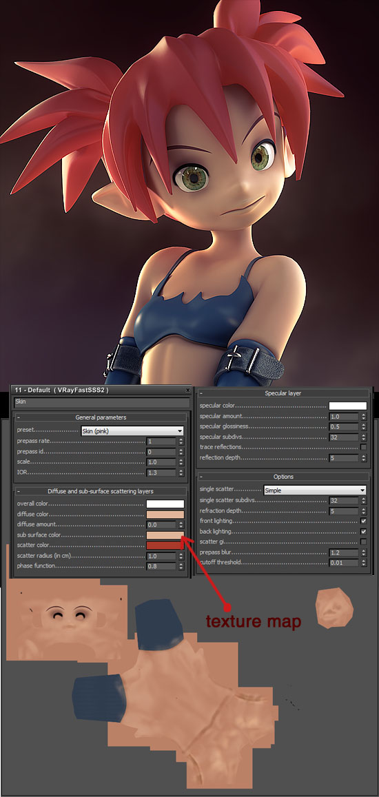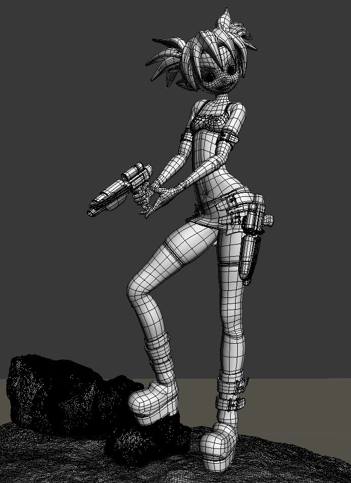 Saludos al foro, hace poco terminé un trabajo para reunir diversas materias para docencia y decidí hacer una escena con todo. Es un modelo en 3ds Max, pintado en Mudbox y Adobe Photoshop y renderizado con Vray. El proceso del personaje ha sido completo para poder usarlo posteriormente en más ocasiones, desde modelo en t-pose, rigging y skinning. Lo último que faltaría para animación sería realizar un setup para el pelo. Os pongo algunas capturas de making para quien le pueda servir de ayuda.