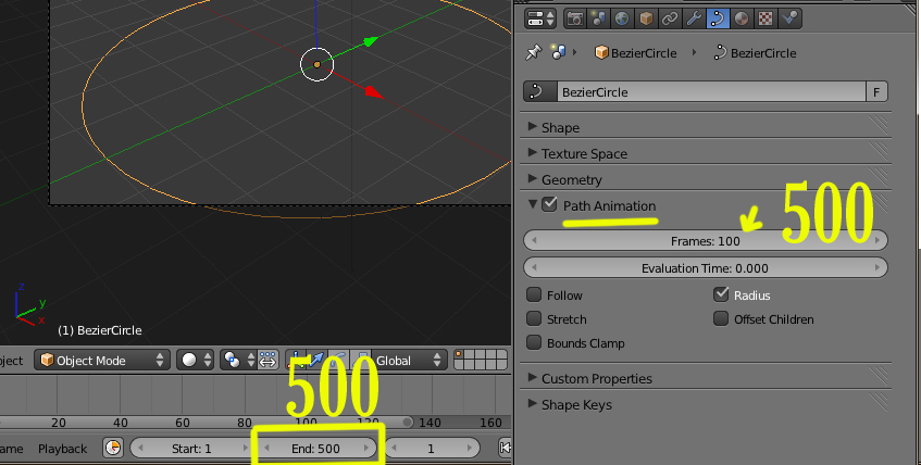 Anime una cámara en Blender con el parent a un Path, pero solo me da 100 frames no sé cómo hacer que dure más la animación.