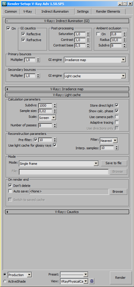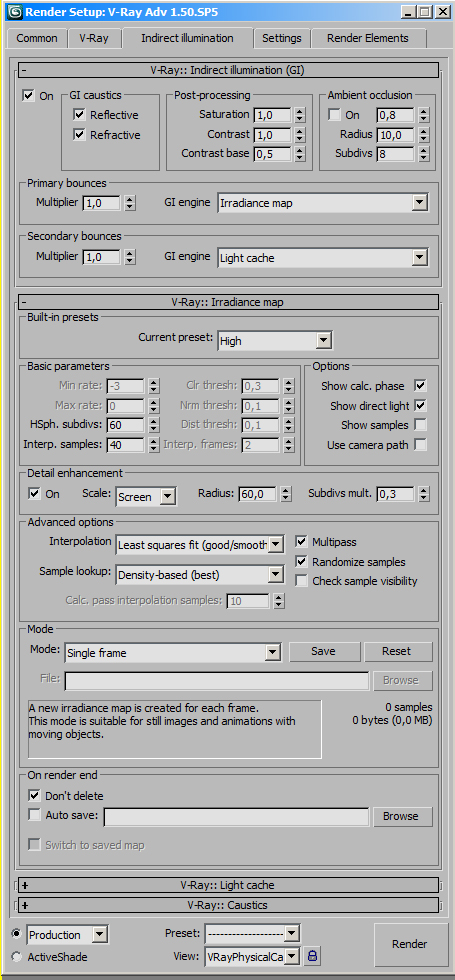 Unos mensaje más arriba he colgado los preset que he utilizado, así puedes ver cómo configuro para los renders y probarlos. Un saludo.