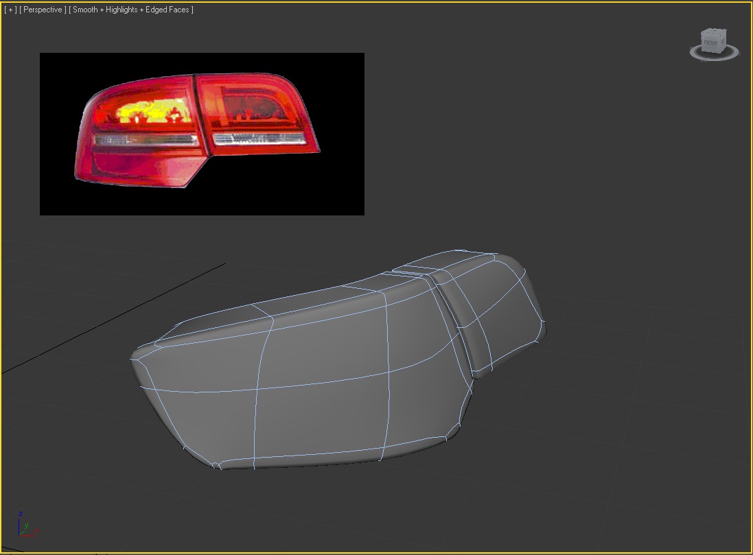 Se trata del piloto trasero de un Audi que estoy terminado, y el caso es que me he hecho un lío. Creo que debo utilizar el UVW mapp, pero tratándose de una forma tan irregular, no sé cómo hacerlo para que me quede bien. Tanto si utilizo el mapeado planar, como cilíndrico, etc. No consigo ajustarlo a la forma.