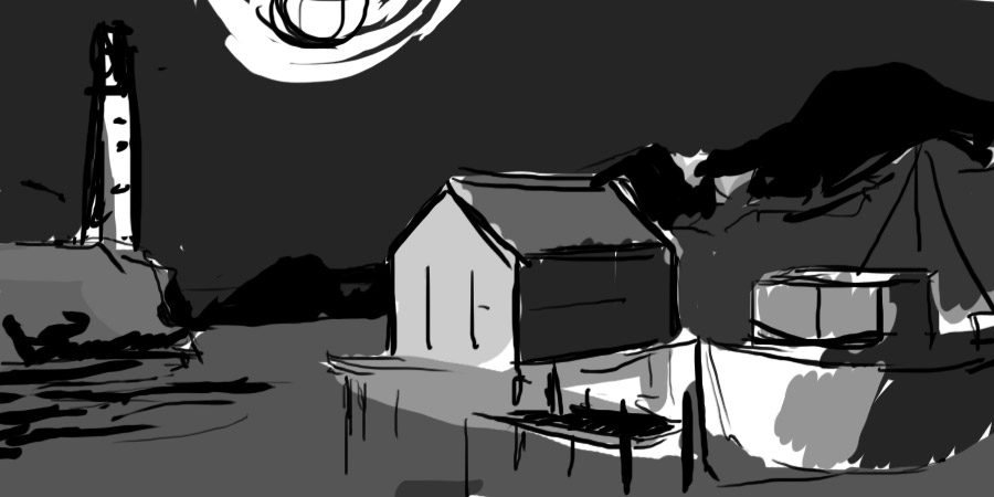 La composición falla bastante. De hecho, parece que el faro esté encima del barco, y no, allá a lo lejos. Te dejo una idea, por si te puede servir de algo. Es sólo una de las múltiples combinaciones que pueden hacerse sin cambiar demasiadas cosas. Y en mis monitores la imagen sale bastante oscura, así que, asegúrate de hacer alguna prueba en la imprenta antes de dejarte los cuartos en el regalo.