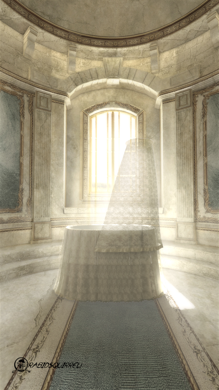 A mí me ha recordado a la escena de Drácula de bram Stoker cuando la nomuerta Lucy lleva en brazos a una niña. Supongo que el tipo de vestido y tanto mármol, vamos, me encanta.