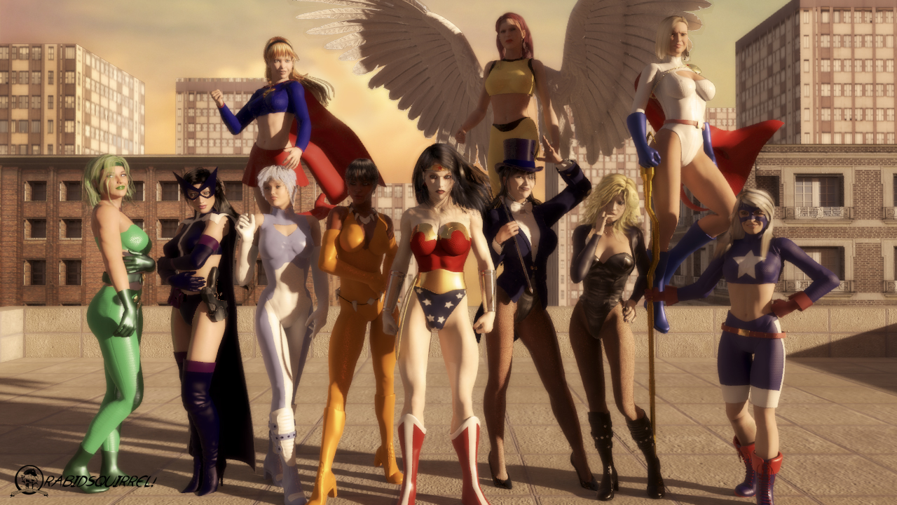 Este trabajo no está exactamente en proceso, esta terminado en una parte, pues quiero mejorar el cabello de wonder woman y curiosear en mayor tamaño u mayor resolución. Toda la escena es un solo render, los personajes no están x layers puesto que tengo el problema de los bordes blancos alrededor de las figuras cuando se calan, y malogran el acabado, aun así el cabello de diana y huntress debo mejorarlo.