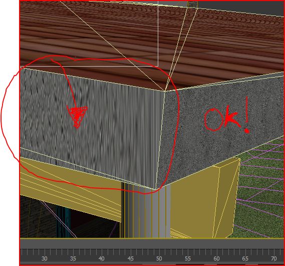 Hola. Estoy dando materiales a una cubierta realizada como edit poly. He usado un material multisubobject, en la cara superior he metido un material de tejas, en las laterales he metido un material de hormigón. El problema es que en la cara lateral frontal después de mucho probar logré dar al material un tileado que me permite visulizar bien la textura, pero en la cara lateral perpendicular a esta no encuentro el valor del tileado para que se vea bien (os adjunto imagen). Sabéis cómo hacer para encontrar el valor de u, que me permita visualizar la textura como en la cara frontal? Sé que una manera de hacerlo sería con el Unwrap, pero quería evitarlo por ahora.