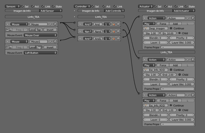 Vaya, claro, entiendo, ya encontré la solución, cuando programo el bloque de sensores, me faltaba agregar una ruta desde el sensor mouse, mouse over, a una nueva compuerta and y luego al actuator action que ejecuta la tarea, esos asegura que cada botón funcione como un hipervínculo, es decir, cada vez que se da un click sobre determinada imagen, se desarrolla, determinado tarea, gracias de todos modos.