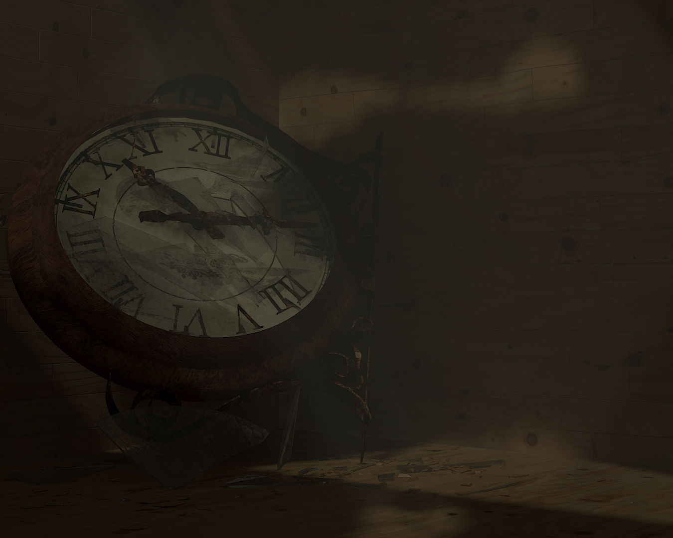 Mucho mejor. El cristal engüarrinao, la atmósfera. Para mí mejora bastante, pero lo del encuadre, veo que me has querido hacer caso, y no nos hemos entendido. Era solo una idea, y quizás no funcione. Yo lo que haría es tal cual lo tienes ahora, alejar la cámara. El tamaño relativo del reloj más o menos como el de la primera imagen que subiste. Así como lo tienes, se ve muy grande, y la idea es hacerlo parecer un poco insignificante, aunque sea lo único que haya en la escena. Punto de atención inferior izquierda, más o menos (regla de tercios), la ambientación muchísimo mejor, ya te digo. Pero te falta resolución en las volumétricas (se ven los pixelacos), y en general un poco de contraste. Imho.