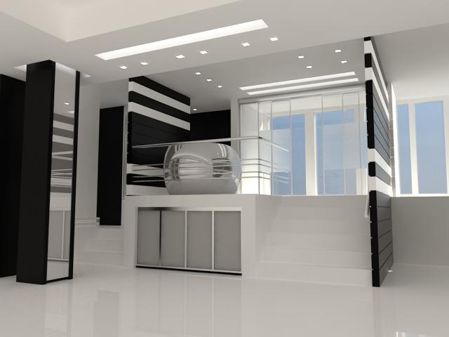 Hola, el hecho de tener mucho color blanco hace que sea difícil distinguir las volumetrías si te das cuenta los escalones no se definen bien, así como las esquinas de tu traga luz, eso se soluciona con un poco de oclusión ambiental si usas Vray activa la casilla correspondiente en la sección de iluminación indirecta. Saludos.