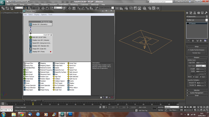 Resuelto, era un problema con el driver DirectX 10. Hola a todos, el Particle Flow siempre me ha ido bien hasta hace unos días, pero ahora cada vez que creo un nuevo sistema standard, me aparece con una raya, y como veis en la imagen con la animación avanzada no se ve nada, decir que el problema me lo da solo con el display ticks y en el visor, si le pongo cualquier otro modo de display me funciona aunque la raya sigue apareciendo.