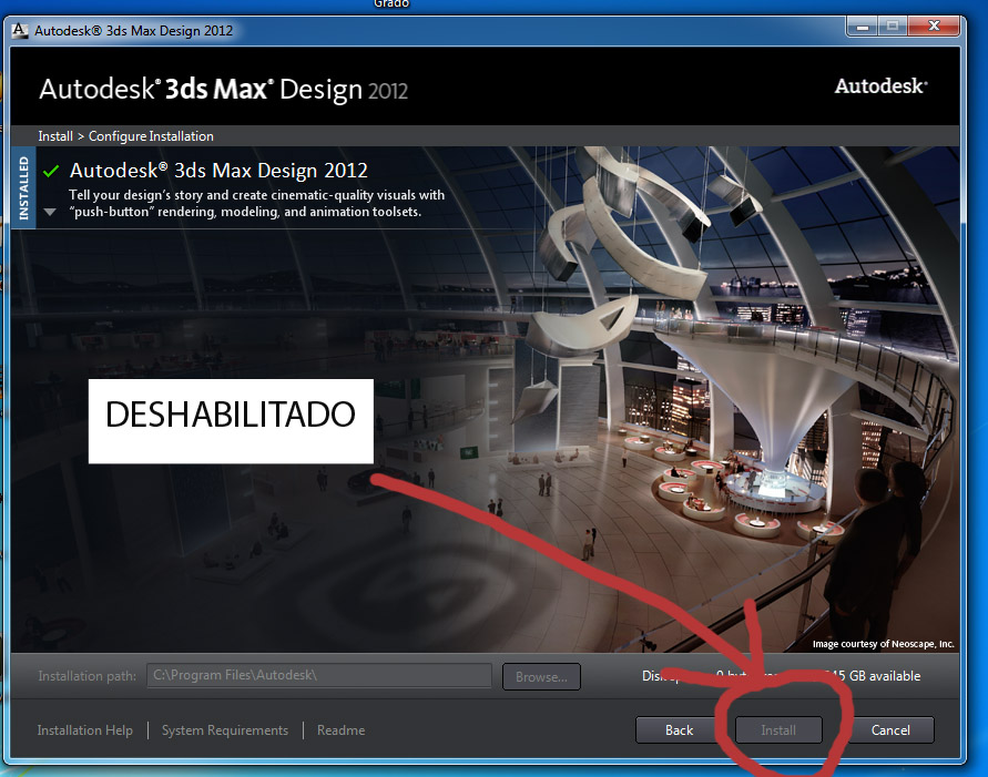 Hola gente, después de unos meses usándolo, el 3ds Max me dejó de funcionar (al intentar entrar no hacía nada). Como solución decidí instalar la versión de prueba cuando llega a la parte de install el botón aparece deshabilitado. ¿porqué puede ser esto? Gracias de antemano.