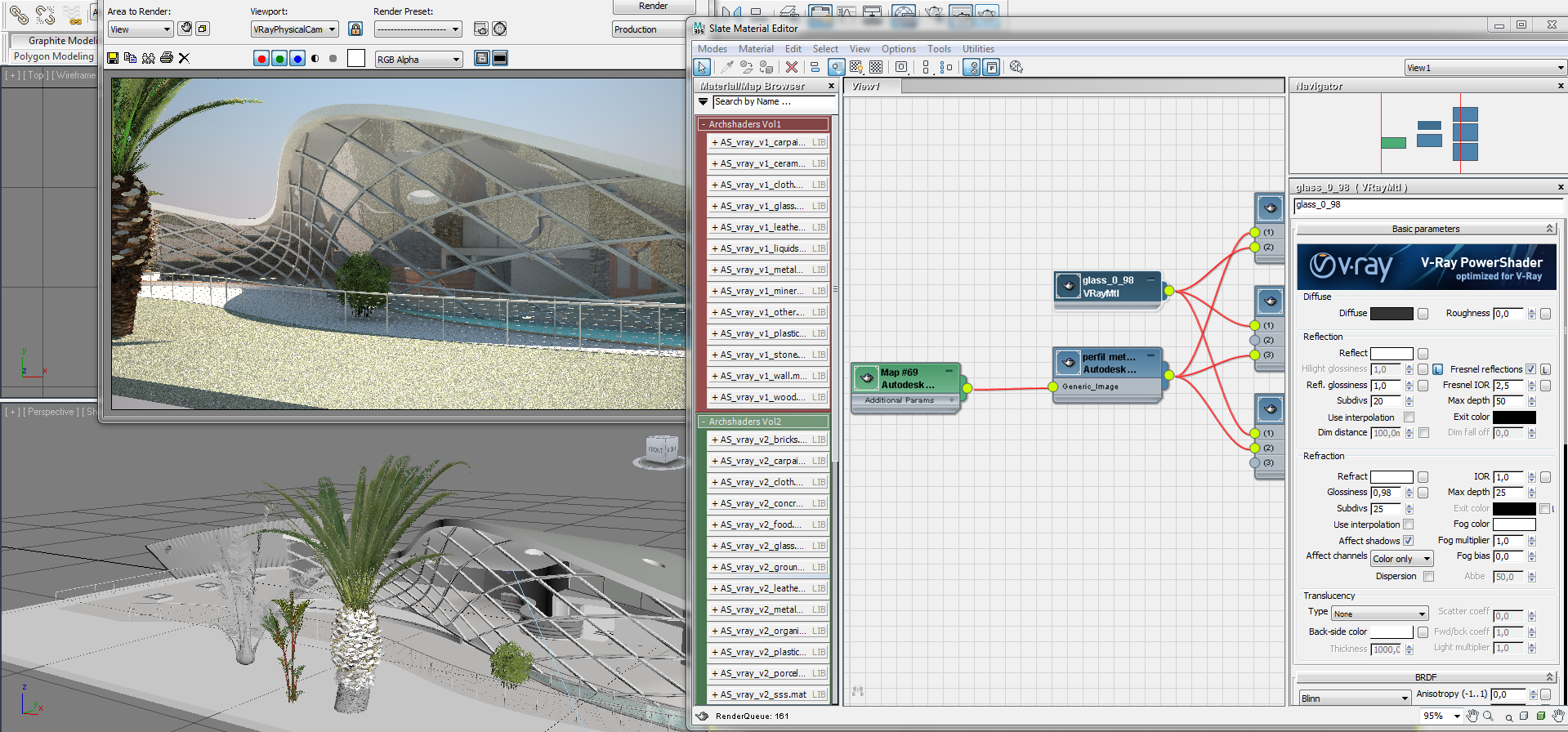 En max le pongo un material vitreo de Evermotion o creado con Vraymat y el resultado son unos reflejos y transparencias horribles, se refleja y transluce lo que el programa quiere.