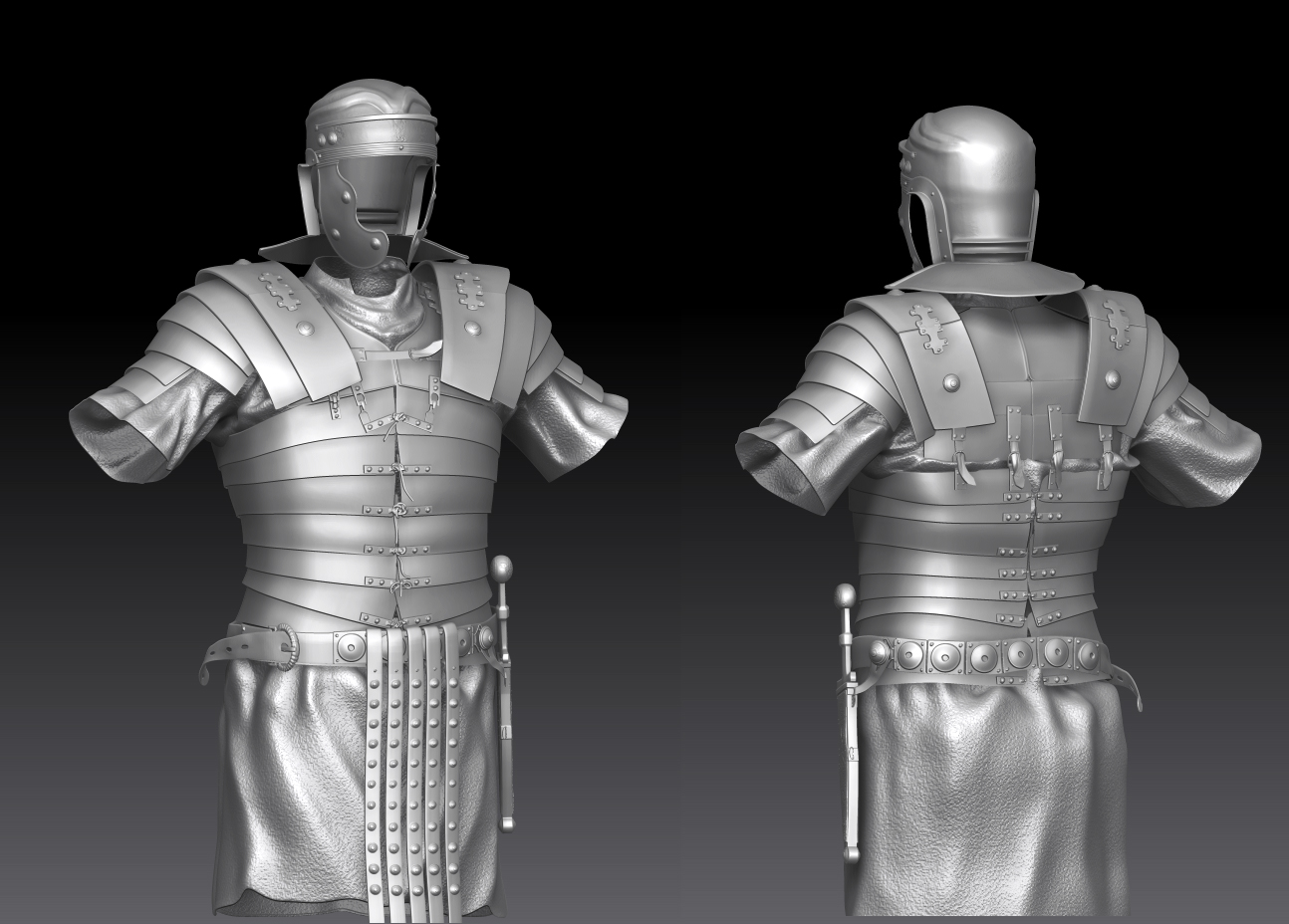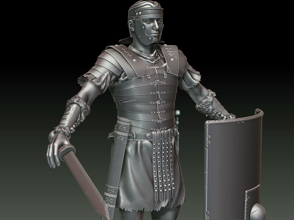 Esas sandalias se llaman caliga o caligae, de las cuales toma su nombre el emperador caligula. La armadura si mal no recuerdo se llama lórica segmentada de las cuales había otras dos versiones, una con escamas llamada squamata y otra que era a base de cota de malla de la cual no recuerdo el nombre.