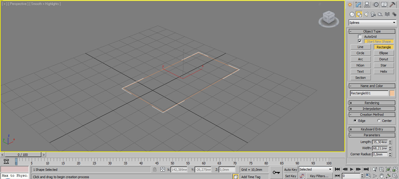 Haz la prueba con un rectángulo desde el panel de create>shapes>Splines>rectangle, por ejemplo.
