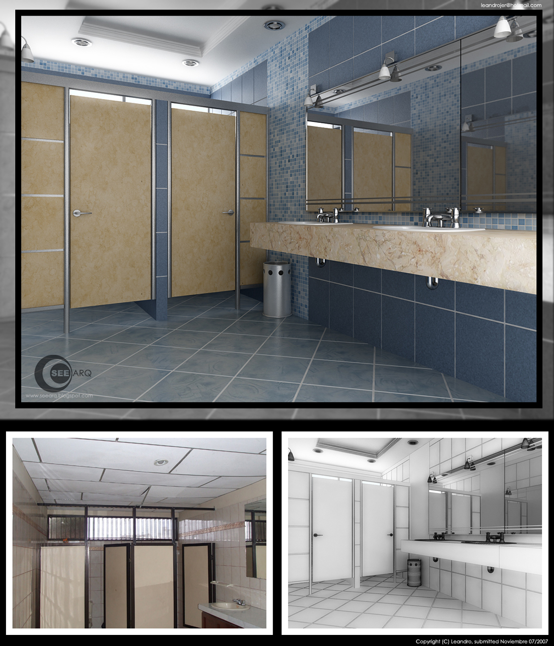 Una remodelación para las oficinas del puerto principal de mi ciudad natal, una batería sanitaria, les adjunto abajo la lámina que se presento junto a la fotografía real del estado en que se encontraba dicha batería. Esto más un pequeño wire de la escena. Saludos Leandro.