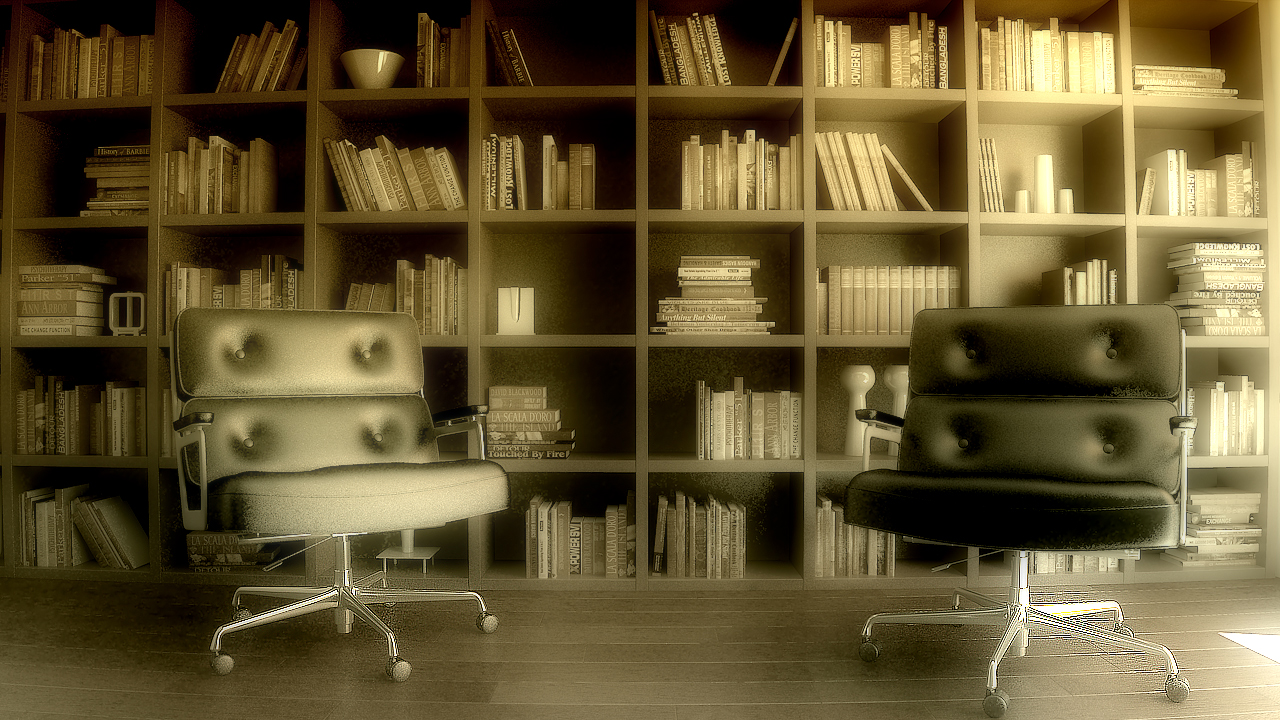 Es agradable la iluminación, pero el grano y el borde (linea) de la parte de abajo de la silla, especialmente dónde están las ruedas, estropean una bonita imagen.