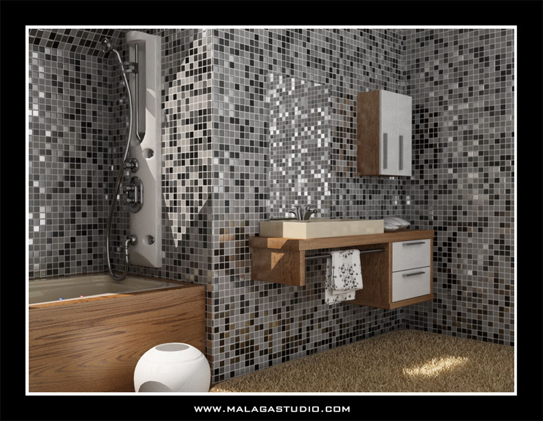 Hola paisano, que tal, pues las tres imágenes se ven bien, aparte de lo que te ha dicho ya, Perolo, tienes que mirar un poco mejor la iluminación de la primera, un poco de Bump al gresite no le vendría mal, no se ve demasiado perfecto el tileado, además de ser bastante grande, un gresite de ese tamaño creo que no existe, pero bueno, puede ser, la segunda imagen la veo bien, el grifo a lo mejor un poco pequeño y demasiado oscuro, y la tercera no sé, pero el tileado y el lag de los azulejos no me convence, aparte creo que tienes la geometría de la bañera mal colocada, porque hay una arista negra en la zona izquierda de la bañera que en la derecha no la hay, y por el punto de vista que tienes el WC, o el bidet, no sé qué es, se ve demasiado pequeño, el papel higiénico esta como un poco acartonado y los cromados de todos los accesorios y del sifón esta como apagado y no refleja como debiera. Un saludo, buen trabajo tío.