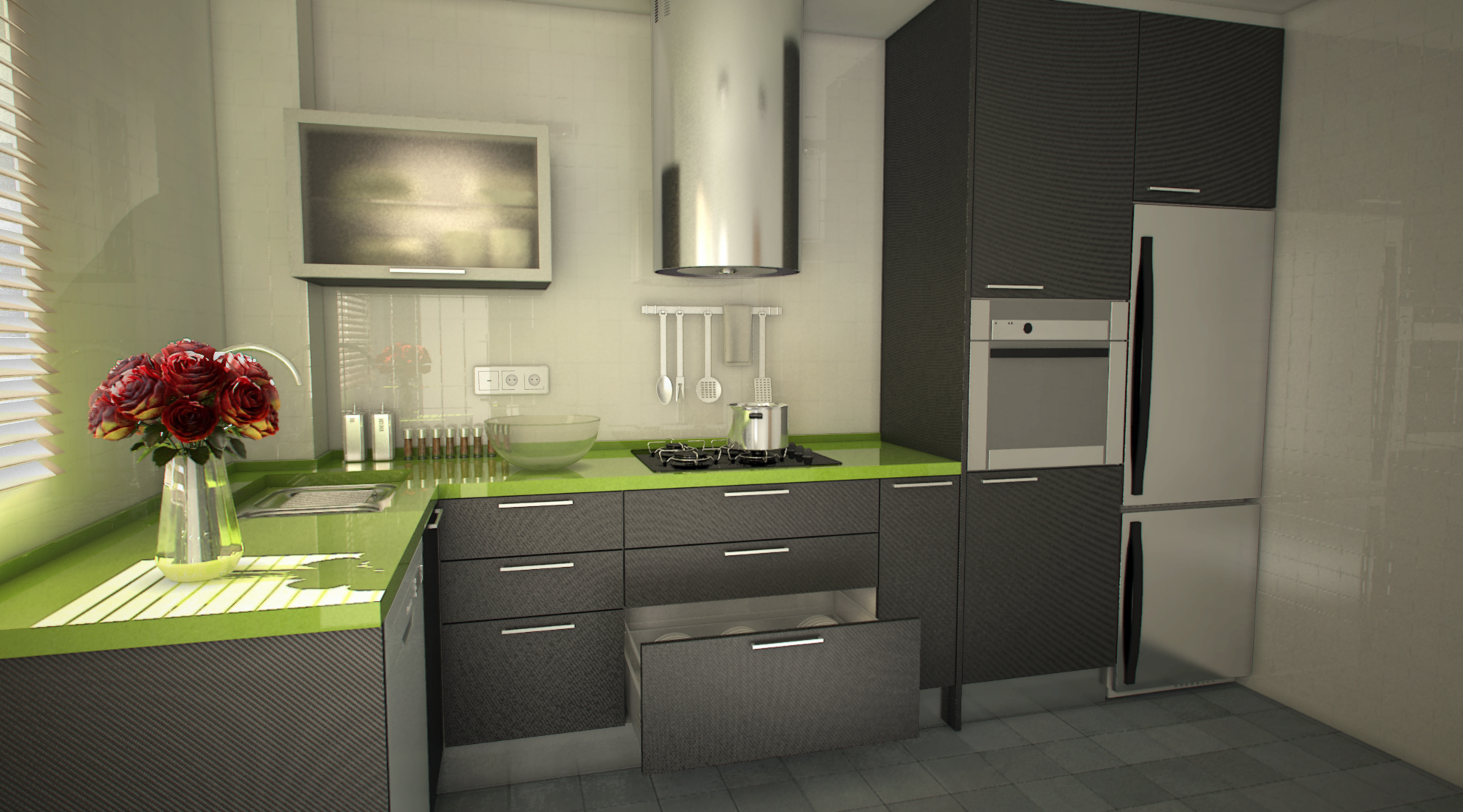 Hola foreros, aquí os dejo una cocina para un cliente, a ver qué os parece? Lo cierto es que la iluminación no me termina de gustar, ¿alguna sugerencia? He usado: