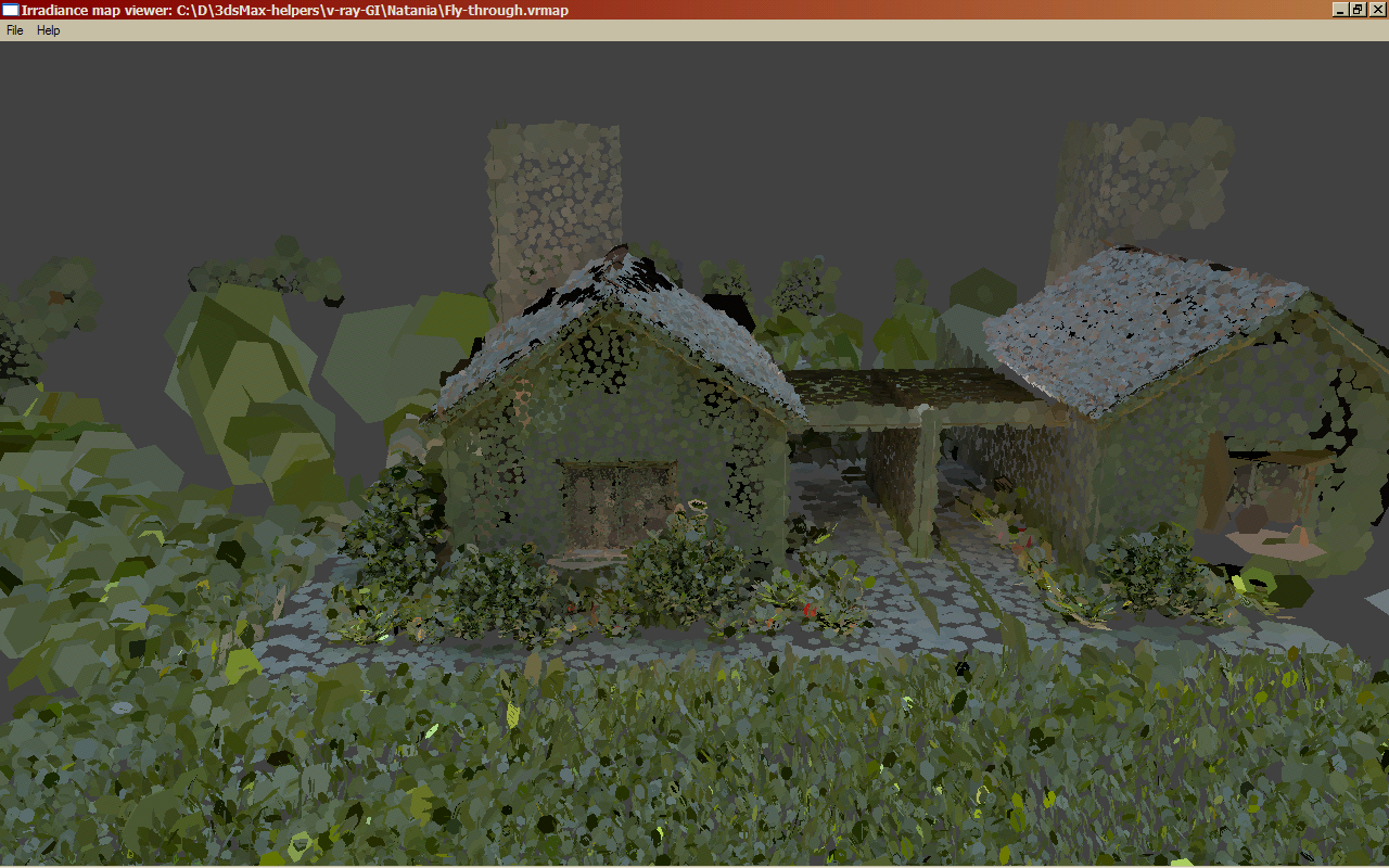 Detalle de Vray, la diferencia de tamaño los globillum (como puede apreciarse en estas imágenes de irradiance) denota que Vray genera más resolución de irradiance donde es necesario, y en áreas menos importantes los globillum son enormes. Esto es lo que hace tan rápido a Vray ante otros tracers.