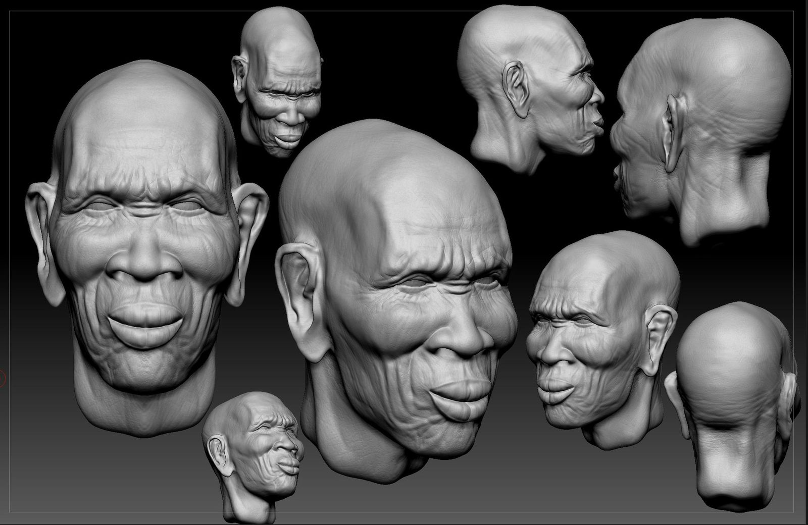 Hola gente.Parece que hace siglos que no subo nada. En esta ocasión voy a subir un trabajo que quiero finalizar y parece que no lo doy hecho. La verdad que tener un hijo no me deja tiempo para mis ratos libres, así que, no me quiero enquistar con un proyecto, y voy a dar por terminado este a sabiendas de que tiene mil fallos (p, e, los ojos son muy mejorables, faltan detalles en orejas como alhajas y agujeros, la unión de las aletas nasales se puede mejorar, no se mil cosas) pero quiero pasar a otras cosas y de momento no tengo intención de tocar más aquí. Subo imágenes del proceso también e incluyo una versión en Low Poly (2600 tris) que saquí por medio del proceso, pensando en modelar en baja el personaje completo. Reconozco en mitad del proceso la boca parecía qué le daba aspecto de estar de cachondeo.